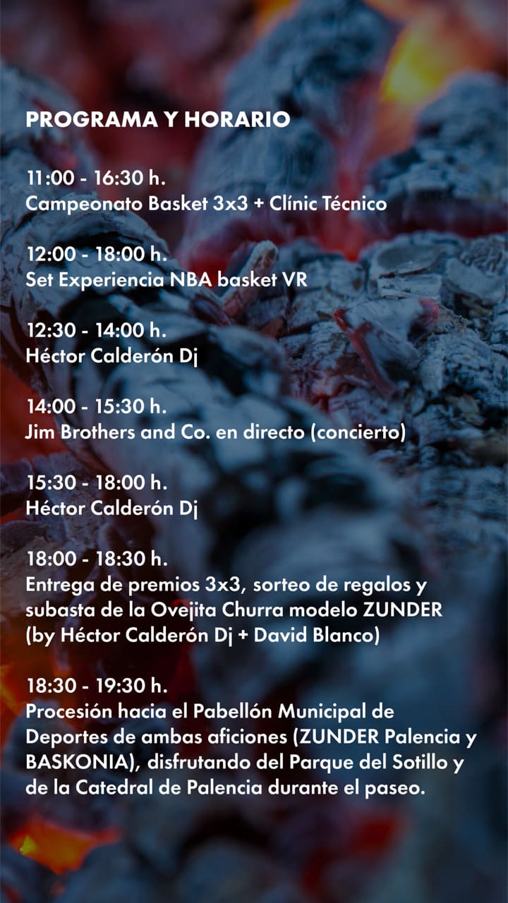 18:00 h. – 18.30 h Entrega de premios torneo basket 3×3, sorteo de regalos y subasta de la Ovejita Churra modelo ZUNDER (by Héctor Calderón Dj + David Blanco).